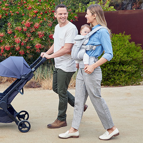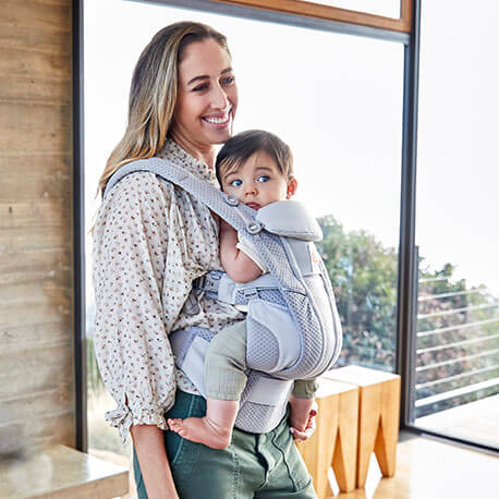 肩腰に荷重をバランスよく分散し、長時間の抱っこもラク。新生児期から幼児まで成長に合わせたサイズ調整が可能。パパママと同じ方向を向ける前向き抱きで、お出かけの楽しみが広がります。